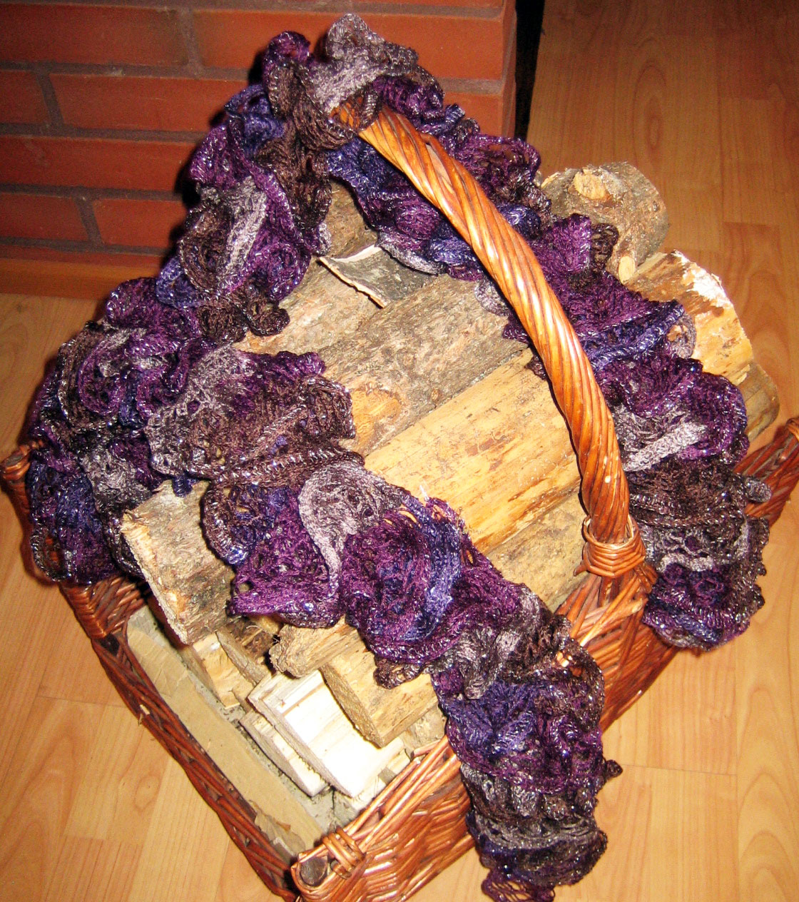 Matka frillahuivien kiehtovaan maailmaan jatkuu...lilan, harmaan, ruskean ja hopean sävyjä oli tässä kerässä. Merkki samaa kuin edellinen punaisemman sävyinen. Piristi tänään harmaata asuani töissä, olematta kuitenkaan liian juhlava. Värit tässä kuvassa ehkä hieman korostuneemman näköiset kuin livenä.
